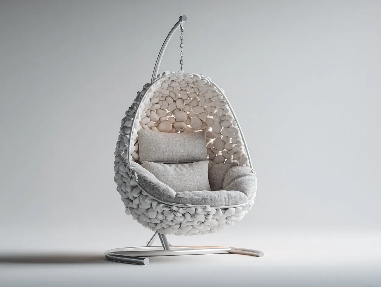Este sillón colgante de jardín está diseñado para crear un espacio de descanso elegante en exteriores. Su forma envolvente y su estilo moderno lo convierten en una pieza decorativa ideal para jardines terrazas patios o balcones proporcionando un lugar cómodo para relajarse.