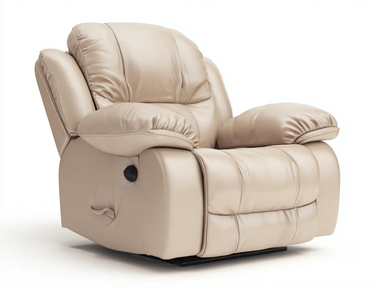La estructura del sillón está fabricada con materiales resistentes que garantizan estabilidad durante el uso prolongado. El tapizado en cuero sintético de color beige aporta una textura suave y un aspecto elegante que se adapta fácilmente a distintos estilos de interior.